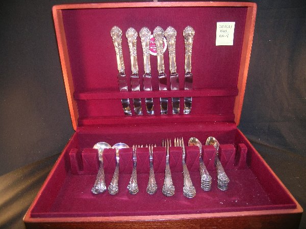 Amston "Puritan" Sterling Silver Flatware Set of 60Jul 25, 202560 PCS. STERLING FLATWARE SET, MONOGRAMMED, (8) 6Feb 21, 2026Wallace Rose Point Sterling flatware in velvet lined box, 11 knives, 12 salad forks, 12 dinnerFeb 24, 2026Reed and Barton Dancing Flowers Sterling Silver Flatware - Set of 55Jul 10, 2025Reed and Barton Dancing Flowers Sterling Silver Flatware - Set of 55Jul 18, 2025Reed and Barton Dancing Flowers Sterling Silver Flatware - Set of 55Jul 04, 2025Reed and Barton Dancing Flowers Sterling Silver Flatware - Set of 55Jun 25, 2025Reed and Barton Dancing Flowers Sterling Silver Flatware - Set of 55Jul 20, 2025Reed & Barton "Francis I" Sterling Silver 78pc Flatware Set3 days LeftReed and Barton Dancing Flowers Sterling Silver Flatware - Set of 55Jul 11, 2025Reed and Barton Dancing Flowers Sterling Silver Flatware - Set of 55Jun 29, 2025"Grande Baroque" by Wallace Sterling Silver 106pc Flatware Set3 days LeftSterling Silver Dinner Set for 12 in Storage Box2 days LeftInternational Wild Rose Sterling Silver Flatware Set of 71 PiecesJul 26, 2025International Wild Rose Sterling Silver Flatware Set of 71 PiecesJul 27, 2025International Wild Rose Sterling Silver Flatware Set of 71 PiecesJul 24, 2025