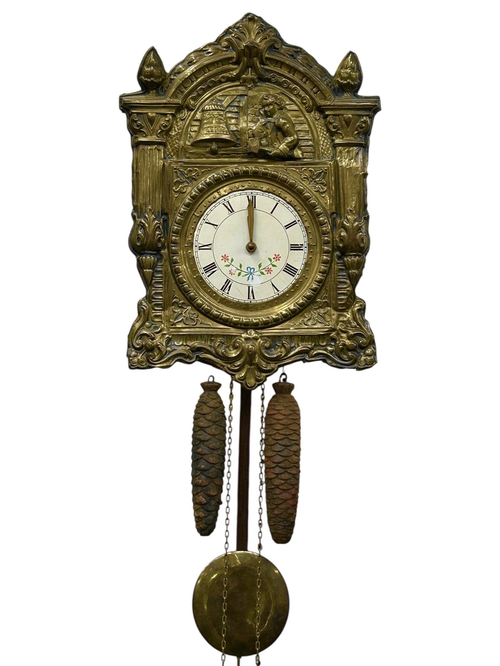 French Repousse Brass Comtoise Mormier Clock.