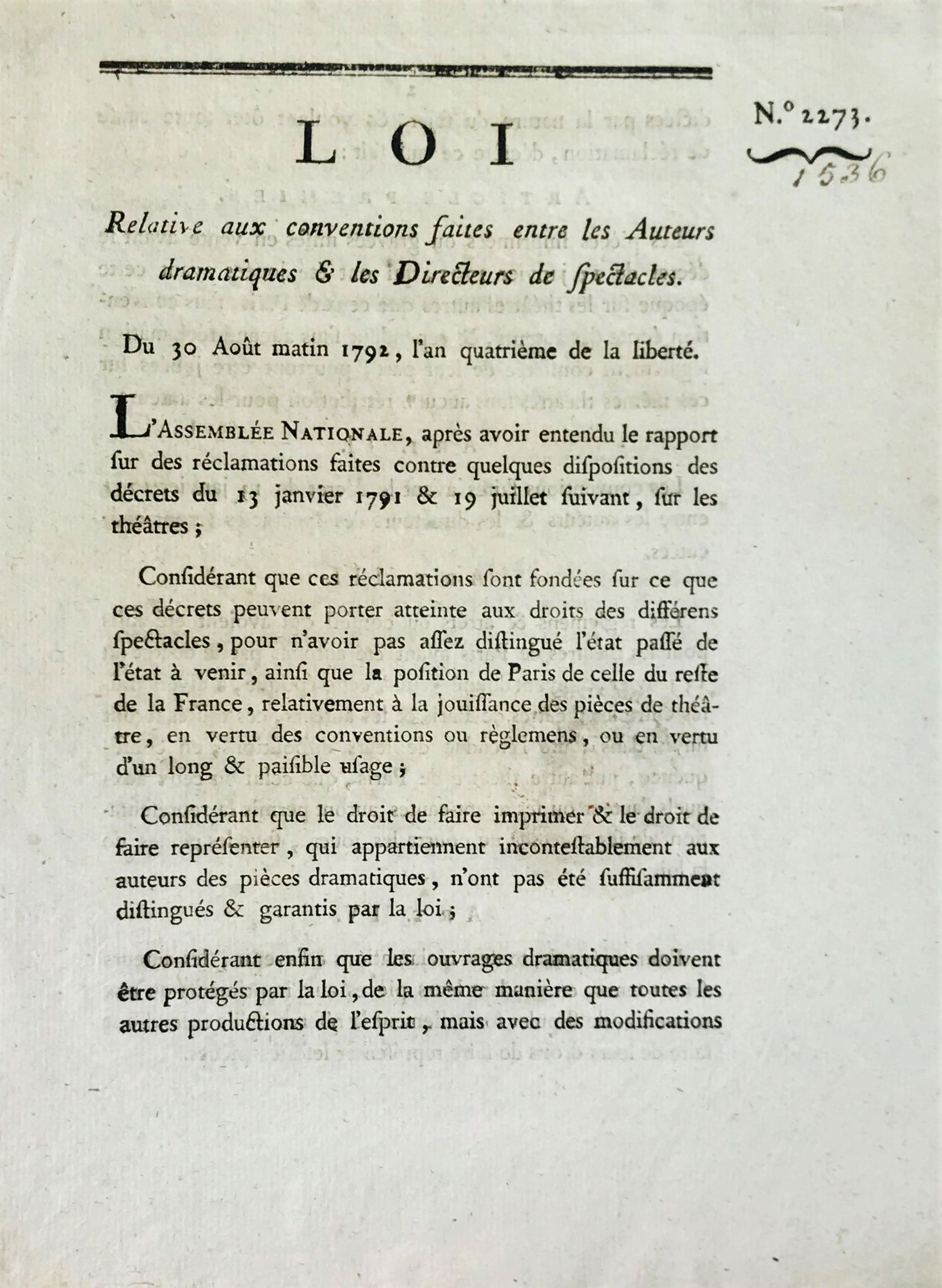 Gastronomy. Lot of two pamphlets on butter and cheese.Feb 18, 2026Antique Handwritten 1800s Notarized French Document Watermarket, French Republic StampFeb 14, 20261776 ANECDOTES AMERICAINES antique FRENCH HISTORY of AMERICA - North & SouthPaperback Copy Of Campagnes D'Afrique 1835-1848 Published By librairie Plon 18982 hrs Left1577 HISTORIC CHRONICLE by JEAN CARION antique in FRENCHAmér. Mér. Guyane Anglaise #4 bis. Guyana Suriname. VANDERMAELEN 1827 old mapRécits de Crimée, 1854 - 1856 Hardcover BookJul 17, 2025French Revolution - Economic Policy. Loi Relatives aux particuliers recus dans les maitrises &Feb 18, 2026Terror Period. Two original documents of 1794-95.Feb 18, 2026Copyright Law. Loi Portant Reglement sur la proprietè des Auteurs d’inventions.Feb 18, 2026Marie-Antoinette Execution. FOUQUIER-TINVILLE. Annales Patriotiques et Littéraires de laFeb 18, 2026The artists during the French Revolution. Decret de la Convention Nationale... Relatifs au jugementFeb 18, 2026Loi relative aux gratifications & Secours à accorder aux Artistes.Feb 18, 2026Robespierre and Freedom of the press. Baraly. Le Front de Robespierre et de sa Clique, ou laFeb 18, 2026Santo Domingo - Haiti. CORPRON DE LAUNAY. Lettera autografa firmata, indirizzata a Fouache ‘Feb 18, 2026Crysis of Law's System. Arrest du Conseil D’Estat du Roy qui indique des Diminutions sur lesFeb 18, 2026