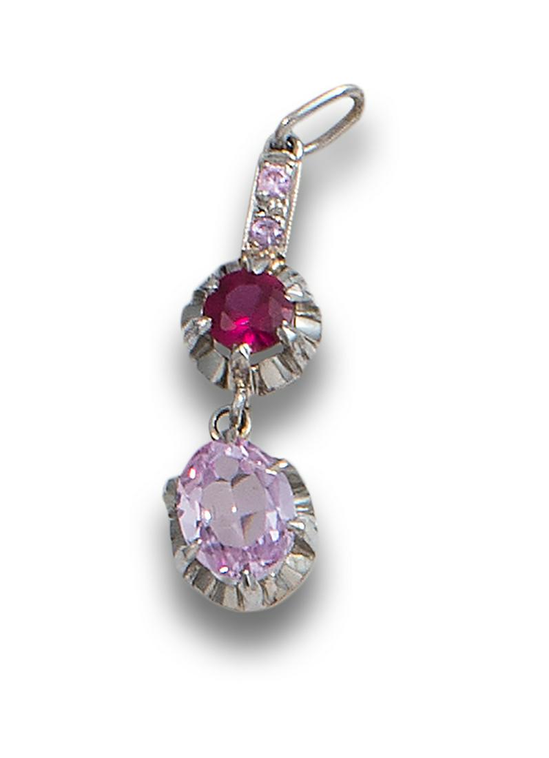 FRENCH ROSES, SYNTHETIC RUBY AND PLATINUM PENDANT