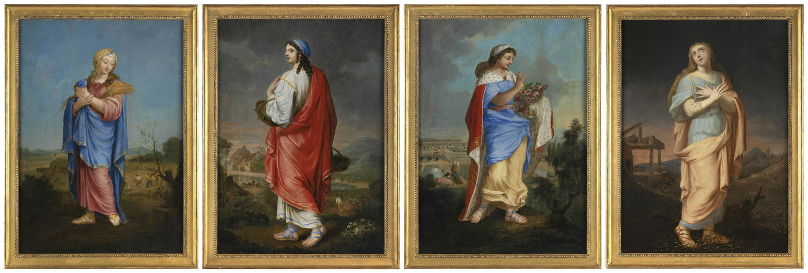 FRENCH SCHOOL (18th Century,), Four allegorical paintings depicting women dressed as the four