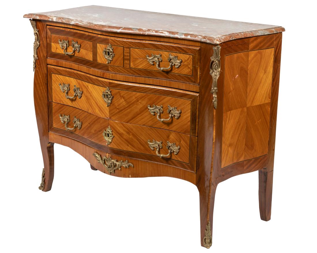 French Serpentine Marble Top Commode