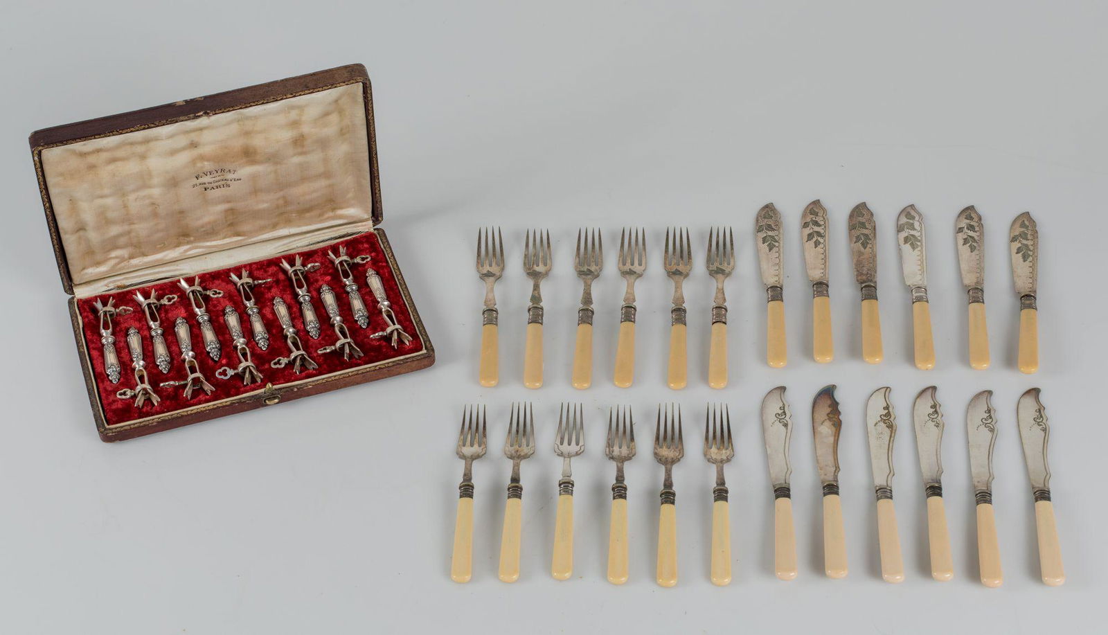 Lot of silver cutlery113 Lots AwayLot Of 2 Sets Of Dessert Fork & Knife Set, British, 19th Century2 days Left(12) STERLING SILVER DEMITASSE SPOON LOTMar 15, 2026Assorted Silverplate Flatware and Serving Pieces, 12 PiecesMar 07, 2026Victorian and Aesthetic Movement Flatware18 hrs LeftSterling Silver Handled Estate Serving FlatwareMar 05, 202610 Retired Vintage BMF Silverplate Forks20 hrs LeftVery Fine Collection Antique English Sterling Silver Kings Pattern Forks3 days Left296pc. French Antique Sterling Silver and Vermeil Flatware Set - Excellent Condition !!Antique Bone-Handled Dessert Cutlery Set, c.1900Antique Elkington & Co Silverplate Dessert Knife & Fork Set w/ Ivorine Handles – c.1900Mar 05, 2026ANTIQUE 19TH C RUSSIAN SILVER SERVING CUTLERY SET IOBMar 07, 2026Christofle, Potfer, and Ercuis French Silver Plate Pieces7 days LeftFine Collection Antique English Sterling Silver Kings Pattern Forks3 days LeftC. 1849 AM & Co. English Victorian Sterling Silver TongsMar 09, 2026(8) STERLING SILVER SERVING PIECESMar 15, 2026