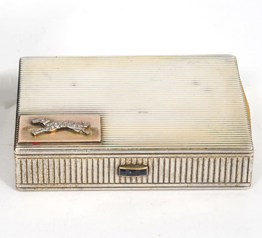 Russian Antique Faberge Era Silver Dog Figurine with Ruby & Diamond AccentsFeb 26, 2026Elegant Neoclassical Jewelry Box with Brass Hardware and Felt Interior2 days LeftEuropean Gold-Plated Sterling BoxFeb 24, 2026English Sterling Silver Cigarette Case with Wood InsertFeb 28, 2026AN AMERICAN JEWELED AND ENAMELED GOLD COMPACT FIRST QUARTER 20TH CENTURY, 14 KARAT3 days LeftVintage Celluloid Hard Plastic Asian Style Lidded Embossed Jewelry BoxJul 21, 2025A FRENCH JEWELED GOLD COMPACT MARK OF OSTERTAG, PARIS, CIRCA 1935, 18 KARAT3 days LeftVintage TOWLE Silver Plated Jewelry Box2 days LeftJapanese Silver Mounted Lacquer Wood Box Gold Inlay Meiji PeriodMar 15, 2026A SILVER SMOKER'S BOX AND COMPENDIUM19 hrs LeftDecorative Metal Grand Piano Music Box Hi Mark Japan Ornate Design Needs Repair5 hrs LeftEngland circa 1750 A George II unmarked silver table double snuff box2 days LeftRussian Silver Cigarette CaseMar 03, 2026Asprey Sterling Silver Engine Turned Cigarette or Cigar Box 1955Mar 15, 2026A Russian 84 Silver Cigarette Box4 days LeftFrench Art Deco 18K Gold Platinum Diamond Sapphire Pill Box2 days Left