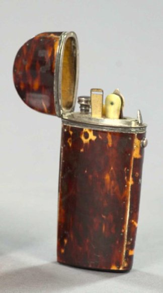 French Silver-Mounted Tortoiseshell and Pique Etui