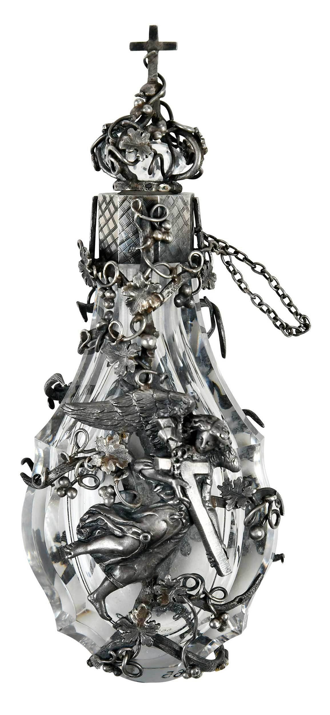 French Silver Openwork and Rock Crystal Perfume Bottle