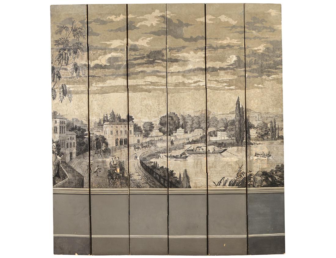 FRENCH SIX-FOLD GRAISAILLE WALLPAPER SCREEN
