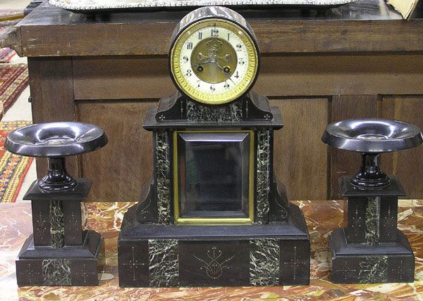 French slate green marble garniture