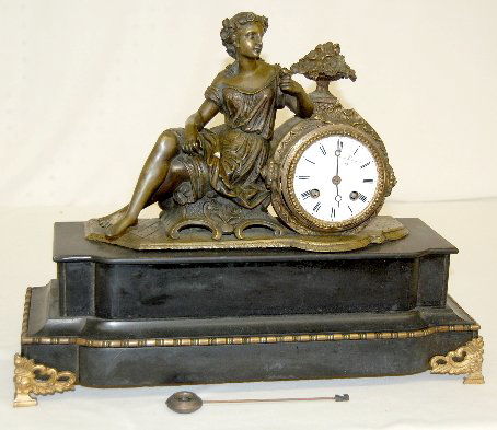 French Slate Lady Statue Clock