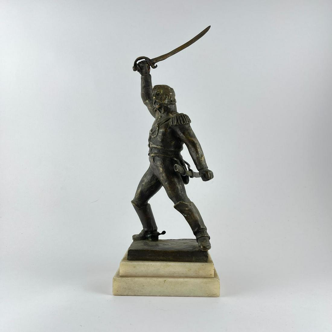 Early 20th C. French Style Bronze Musketeer on Marble Base