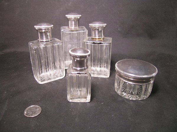 FRENCH STERLING SILVER CRYSTAL VANITY JARS 5 PC