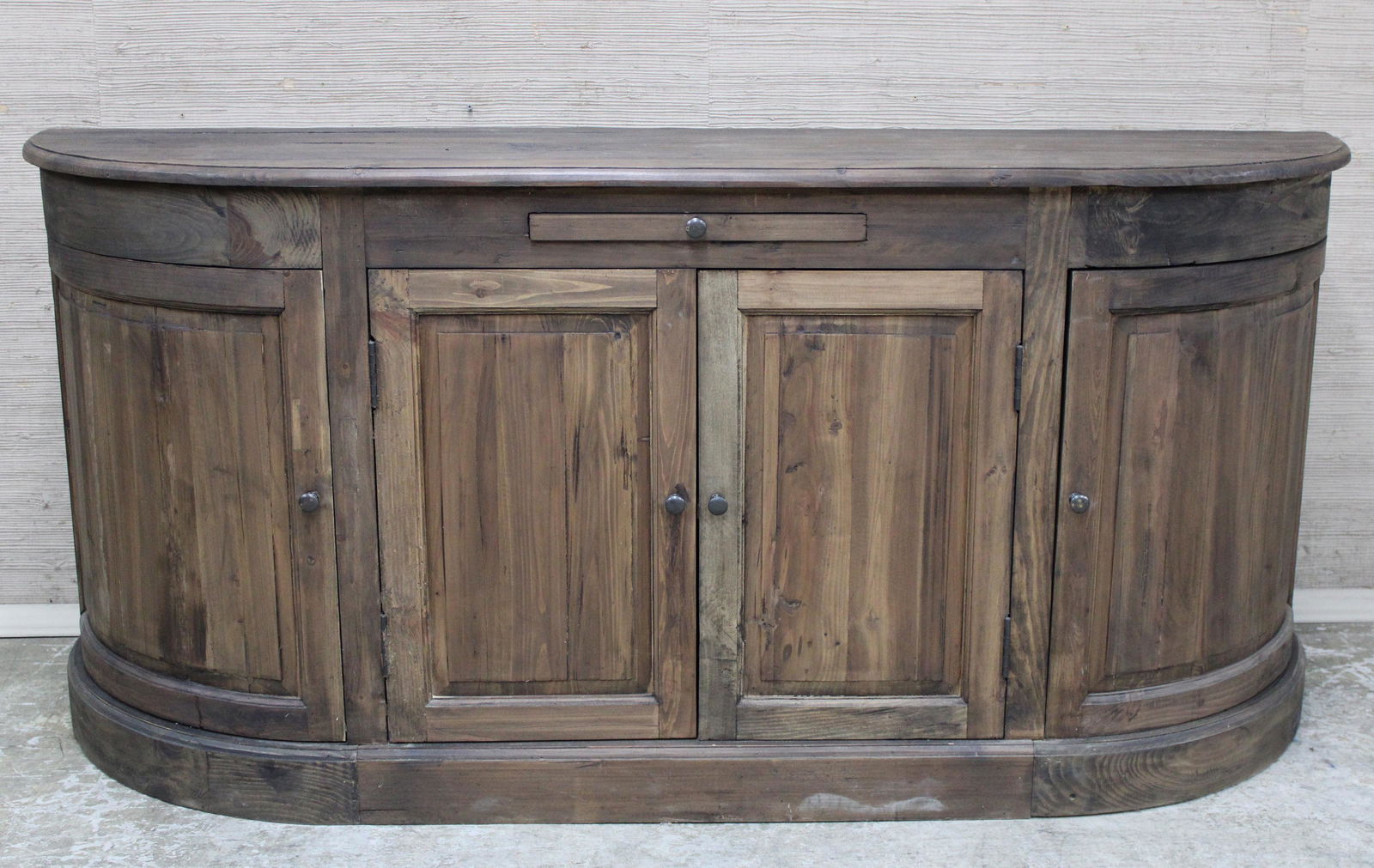 SoldFrench Style BuffetFrench style buffet / sideboard, featuring oversize top with serpentine edge, above two drawers with metal scroll style pulls, above four cabinet doors opening to shelved interior storage, above scallSee Sold Price