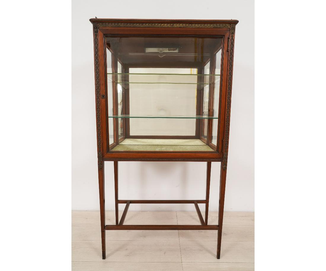 SoldAntique French Style Display Cabinet with Glass ShelvesAntique French Style Display Cabinet with Glass Shelves. Arched Top. Gilt bronze mountings. -- Dimensions: H: 84 inches: W: 38 inches: D: 18 inches ---See Sold Price