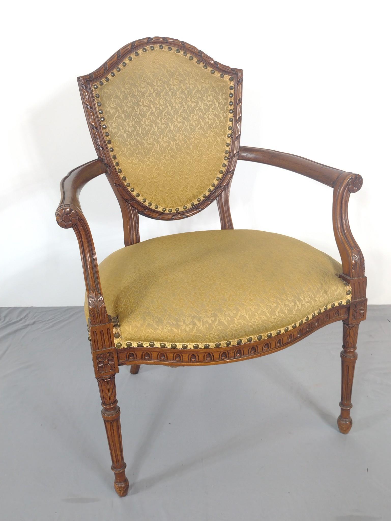 Gold French Louis XV Style Open Arm Upholstered Chair