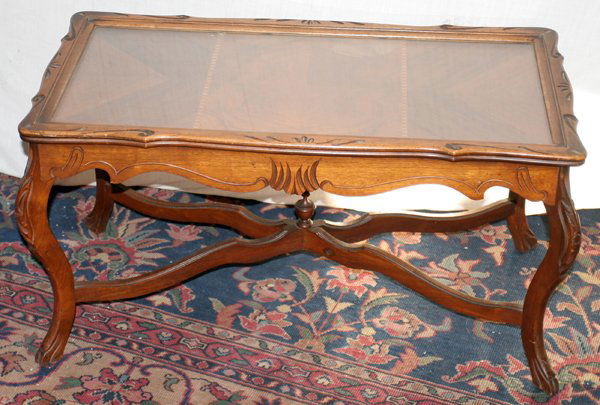 FRENCH STYLE WALNUT COFFEE TABLE, C. 1930
