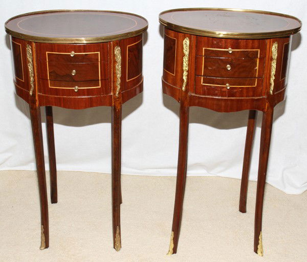 FRENCH STYLE WALNUT COMMODES, TWO, H 27", L 16"