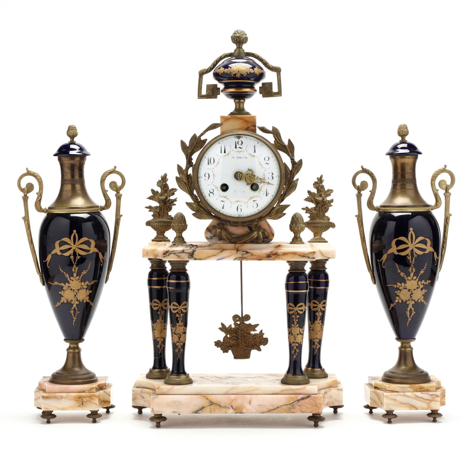 (3) FRENCH LOUIS XVI STYLE ORMOLU-MOUNTED MARBLE CLOCK & CANDELABRA GARNITURE SETMar 29, 2026(3) FINE FRENCH SILVERED & GILT-BRONZE CHINOISERIE MANTEL CLOCK & GARNITURE SETMar 29, 202619th C. Beurdeley 3 Pc. Gilt Bronze Mounted Marble Clockset w/ Wedgewood Plaques, Circa 18806 days Left(3) FRANZ HERMLE LOUIS XIV STYLE MANTEL CLOCK & CANDELABRA GARNITURE SETMar 29, 2026An Exceptional Three-piece Mantel Garniture, Lerolle Frères, clock and candelabra, Ormolu bronzeApr 01, 2026Louis XVI Style Gilt Bronze Mounted Blue Turquin Marble Three Piece Clock Garniture Paris Circa 18751 day LeftLouis XVI Bronze Marble & Porcelain Rotary ClockApr 30, 2026Set of 3 French Ormolu Bronze Louis XVI Mantel Clock with Sevres Style Candelabra4 hrs Left(3) FRENCH LOUIS XV STYLE GILT-METAL MANTEL CLOCK & CANDELABRA GARNITURE SETMar 29, 2026A three-piece garniture clock and candelabra, gilt bronze mounted on Carrara marble. Allegory ofApr 01, 2026A French Empire Style Gilt-Bronze Mounted Marble Pedestal ClockMar 29, 202619th Century French Gilt Bronze & Marble Clock Garniture Set with Candelabra Lamps1 day LeftANTIQUE FRENCH SEVRES PORCELAIN AND BRONZE BOUDOIR SETApr 11, 202619th Century French Louis XVI Style Garniture Gilt Bronze Clock SetMar 29, 20263-PIECE LOUIS XVI STYLE CLOCK GARNITURE SET5 days LeftExquisite French Champleve Enamel & Bronze Clock set6 days Left