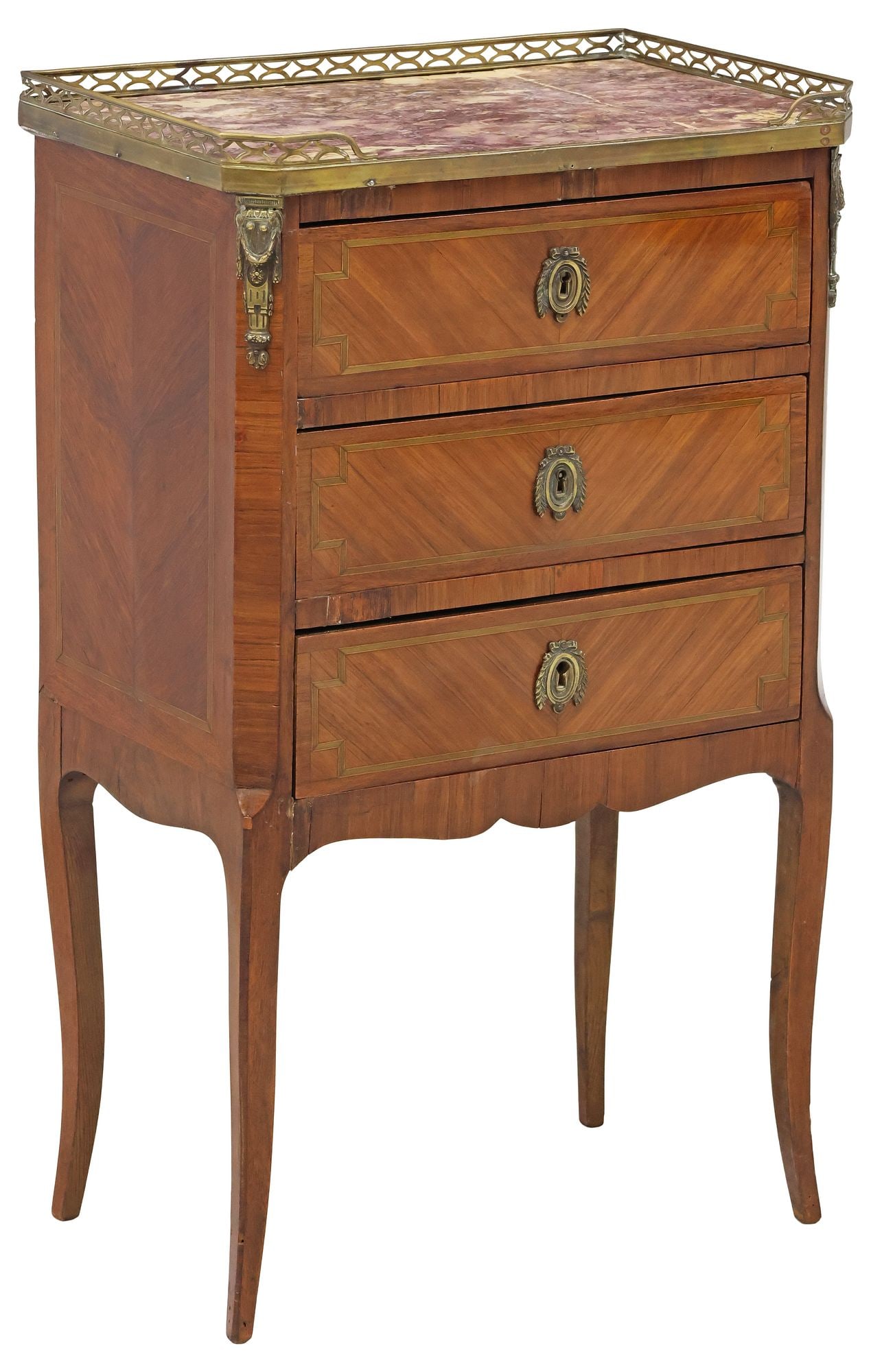 SoldFrench-Style Marble-Top Night StandFrench-style marble-top night stand, brown marble 30.5" tall x 14.5" wide x 14.5" deep State-wide delivery is available for this item. Please email shipping@vogtauction.com or call 210-822-6155 for aSee Sold Price