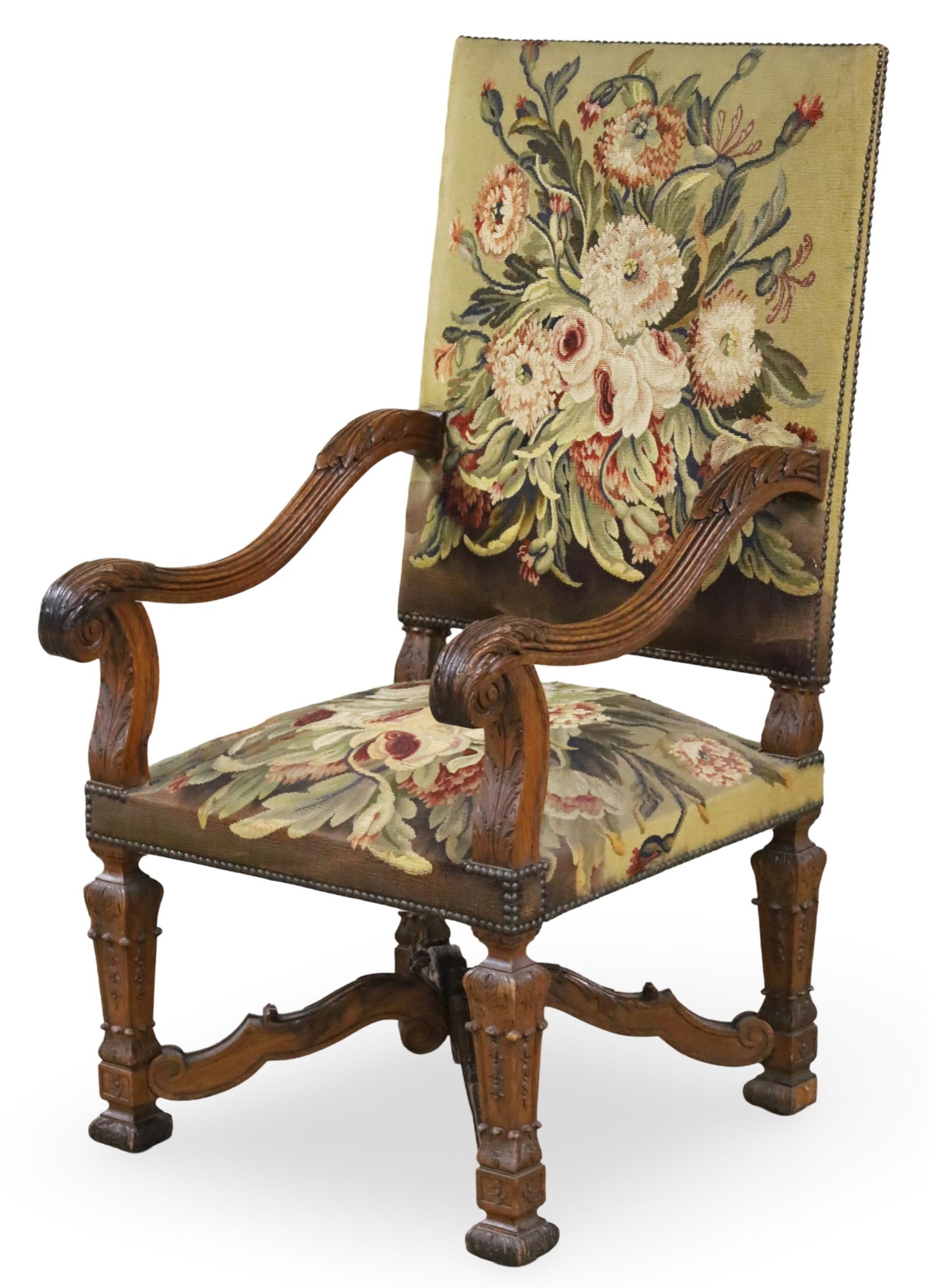 FRENCH WALNUT AND NEEDLEPOINT FAUTEUIL, 19TH C.