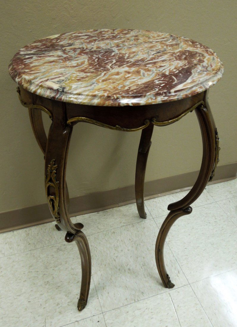 French Walnut Marble Top Occasional Table
