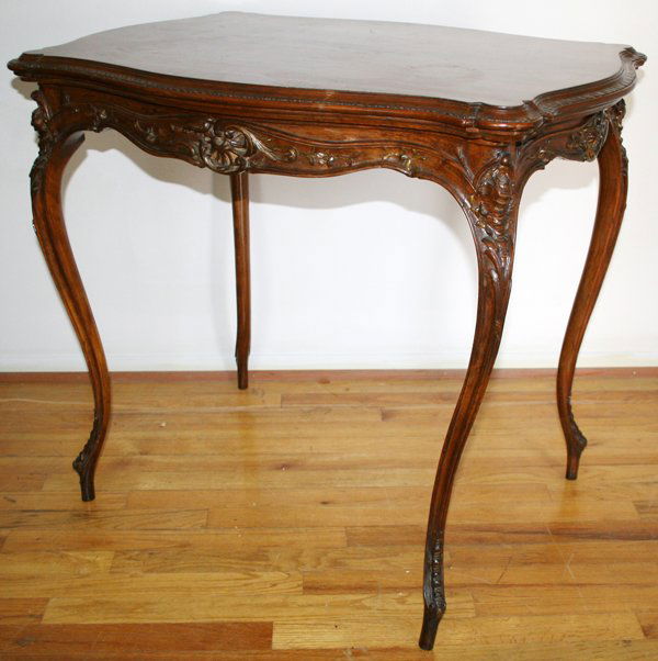 FRENCH WALNUT PARLOR TABLE, C. 1900, H 29"