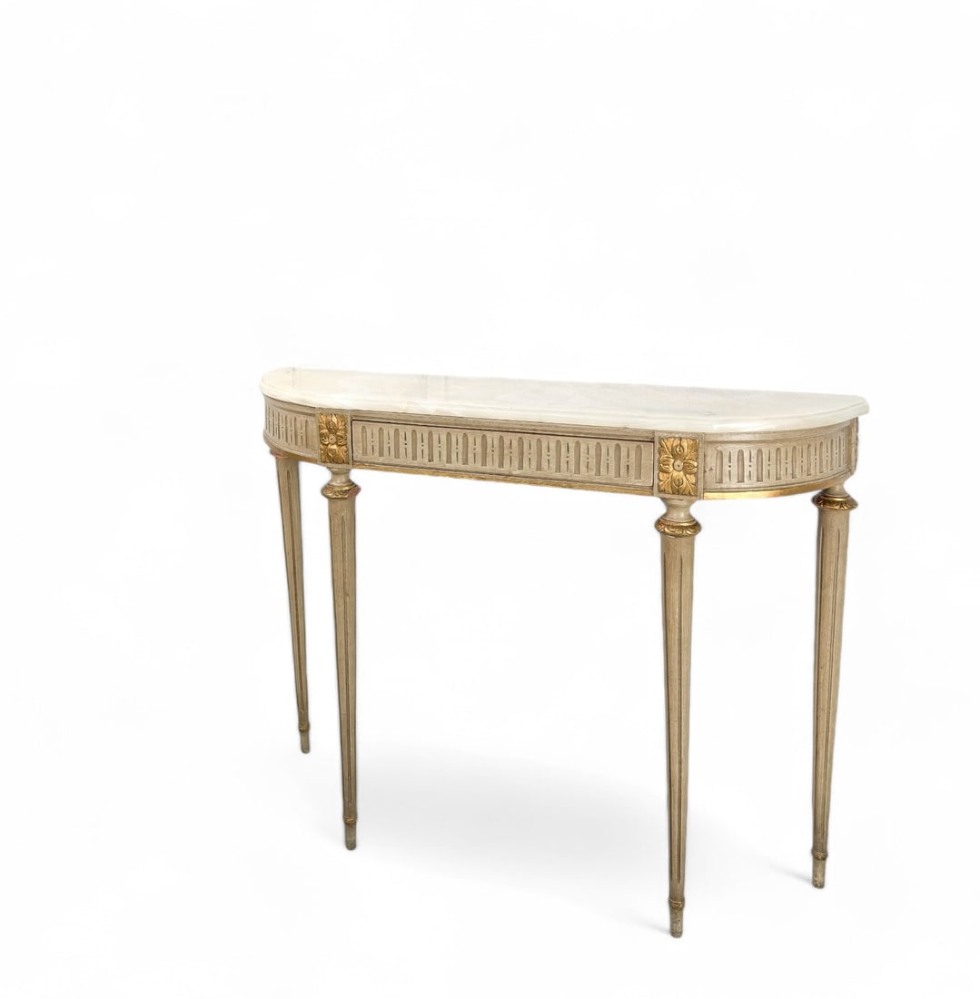 SoldLouis XVI Style White Marble Top Hall TableFrench Louis XVI Style White Marble Top Hall Table / Console - 34.5 in tall x 44 x 16See Sold Price