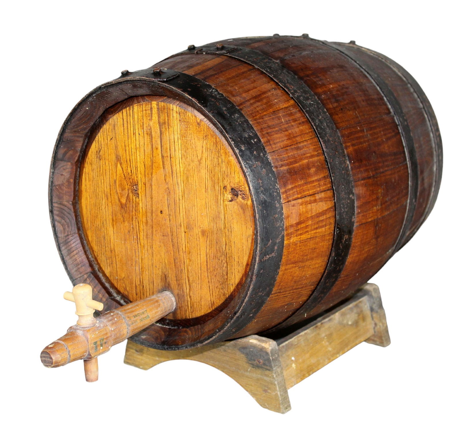 SoldFrench mini wooden sherry keg on standFrench mini wooden sherry keg on stand. 14.25"h x 7.5"w x 8.25"dSee Sold Price