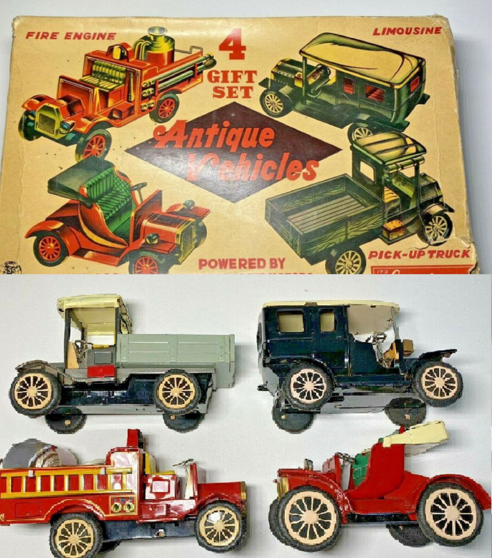 14 pc. Lot of Assorted Japanese Tin VehiclesFeb 07, 2026Toy Lot including Cars, Trucks, Thomas the Train, Mario Kart, Caterpillar, John Deere, etc33 mins LeftLot of Toy and Model VEhicles, Trucks, Cars incl Ford Benzoil Truck, John Deere Dump Truck, Etc33 mins Left(5) Cast Iron & Metal Toys Lot2 days LeftCollection of Die-Cast Model Cars, Trucks, Airplan1 day Left(15) Diecast Fire Engines & Vehicles2 days Left(25) Japanese Tin Litho Various Brand VehiclesFeb 07, 2026Pontiac Chevrolet Ford Tractor Tin & Plastic ToysFeb 05, 2026(3) Japanese Tin Vehicles Durham & Modern ToysFeb 07, 2026Three Vintage Japanese Tinplate Fire Vehicles, including a Modern Toys FD No. 7 Fire TruckFeb 07, 20263 Pressed Steel Farm Implements Marx, Tru Scale3 Tin Friction Army, Water Truck, Car Made JapanAlps Happy Santa, Cha Cha Santa Box, & Hot Rod Santa BoxedFeb 07, 2026(3) European Tin Litho Windup Vehicles VEB/Triang/MettoyFeb 07, 2026(3) 2 Japanese Tin Friction Vehicles & Box Ahi/Cragtsan/TaiyoFeb 07, 2026Die-Cast Model Cars & Trucks Hot Wheels, Matchbox1 day Left