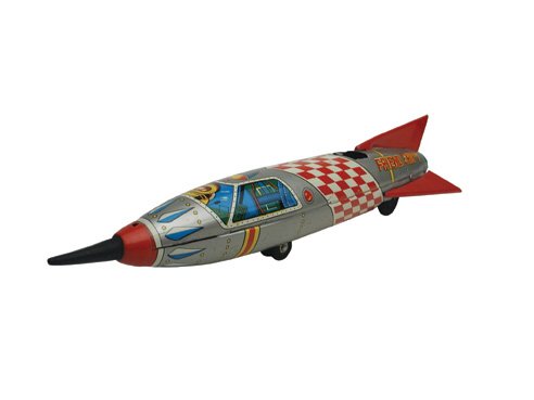 Sold5- VINTAGE SPACE TOYSIncludes battery operated Friendship Spaceship, battery operated Atom Rocket 7, Courtland friction Space Rocket Patrol, windup Atomic Train, and friction Space Ship. Conditions vary. Largest 9" Very GSee Sold Price