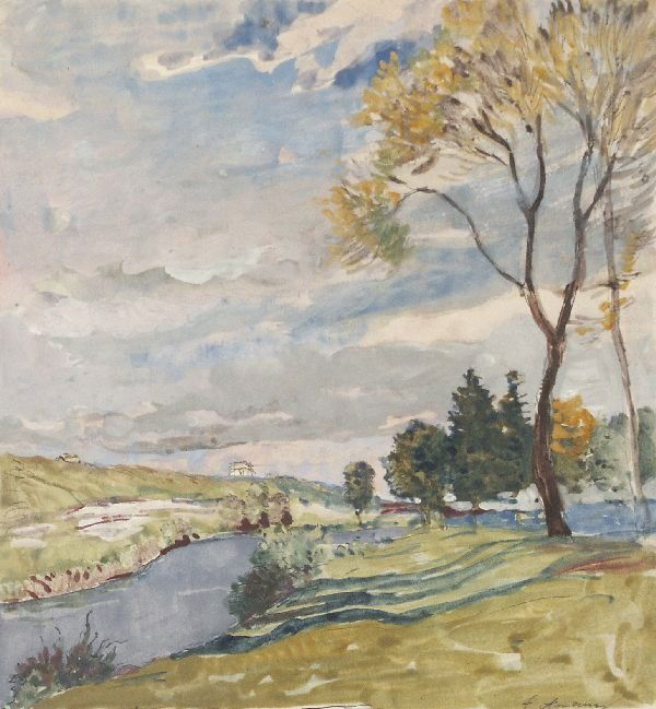 Fritz Amann "landscape With River". No Date.
