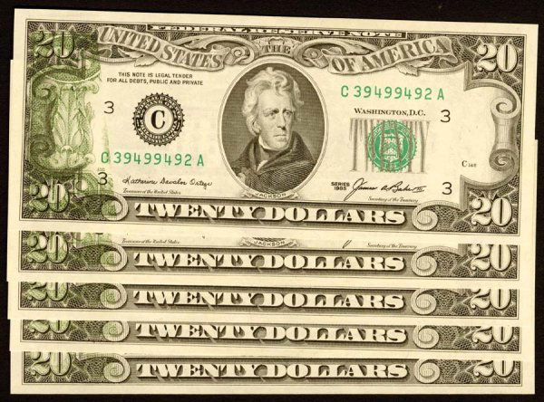 1974 $1 Currency Pack 3pc Consecutive Gem CU Francine NEFF5 days Left1990 $50 Philadelphia FRN PMG 67EPQFeb 24, 20261977 $10 FRN San Francisco Fr# 2023-L PMG MS64 Offset Print Error5 days LeftEPQ 1950C $20 Federal Reserve Note Chicago Fr# 2062-G PMG Gem66Feb 25, 20261976 $2 Federal Reserve Note ERROR Cleveland Obstructed Printing AU5 days LeftGreen 1914 $20 FRN Philadelphia Fr# 975 PMG VF25 GCC3 days LeftEPQ 1950C $20 Federal Reserve Note Chicago Fr# 2062-G PMG Gem66Feb 28, 20261988A $20 Chicago FRN PMG 67EPQFeb 26, 2026Group of 4 US 1963 B $1 Green Seal Federal Reserve NotesMar 07, 2026Green 1914 $20 FRN Philadelphia PA Fr# 975 PMG VF20 GCCMar 05, 2026EPQ 1950B $10 Federal Reserve Note Philadelphia Fr# 2012-C* PMG 65Feb 26, 2026EPQ 1934B $20 Federal Reserve Note Richmond Fr# 2056-E PMG Gem66Mar 01, 2026$20 FEDERAL RESERVE OF NEW YORK BROWN SEAL NOTE5 days Left65 1928B $10 Federal Reserve Note Chicago FR#2002-G PCGS GEMMar 03, 20261934 $10 Philadelphia FRN PMG 64EPQFeb 24, 2026VF Details 1929 $20 New Jersey National
