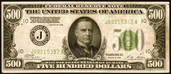 $500 UNITED STATES CURRENCY NOTE 1934-A OHIO