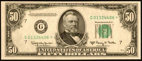 (224* 1950 D $50 FEDERAL RESERVE NOTE ATLANTA FR.2111-F* STAR NOTE PCGS 35 CH VFSEUYCO4.5(52)$1554 days Left