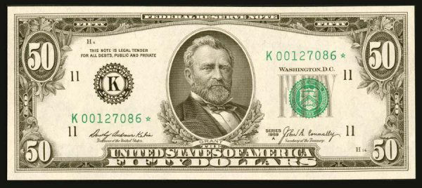 About Uncirculated Series 1950-D Fifty Dollar Federal Reserve STAR NoteCoinhunters4.7(259)$50(3 bids)