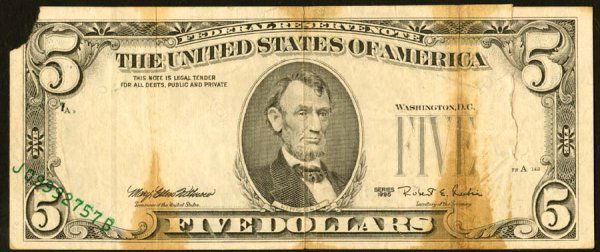 EPQ 1969 $50 Federal Reserve Note Kansas City Fr# 2114-J PMG Gem67Mar 05, 2026VF35 1914 $5 Federal Reserve Note New York FR#851b PMGFeb 28, 2026Currency Notebook with U.S. and Foreign NotesMar 10, 202665 Binded Consecutive Number 2003 $1 United States Federal Reserve NotesFeb 27, 2026EPQ 1950C $5 Federal Reserve Note Cleveland Fr# 1964-D PMG CH63Feb 25, 2026Notes) 2004A $10 Federal Reserve Bank Note Set Uncirculated OGP (44 days LeftPPQ 1928D $5 Legal Tender Note Red Seal Fr# 1529 PCGS Gem 652 days Left$500 UNITED STATES CURRENCY NOTE 1934-A OHIO5 days Left4100 UNITED STATES RED SEAL NOTE CURRENCY5 days LeftScarce 1928-C $5 Legal Tender Mule Note F-A Block2 days Left(009B 2017 A $5 FEDERAL RESERVE NOTE FR.1998F RADAR SERIAL #0660 PCGS UNC 64 PPQMar 03, 2026US 1990 $50 Federal Reserve Note, Fr. 2124-E1963 United States $5.00 Red Seal Silver Certificate Star NoteFeb 27, 2026VF 1914 $20 NEW YORK FEDERAL RESERVE NOTE BLUE SEAL RAW F/Feb 27, 2026USA $1 Federal Reserve Note 1993 – Serial A28115845A6 days LeftPPQ 1928B $5 Legal Tender Note FR#1527 PCGS Gem 65Feb 28, 2026