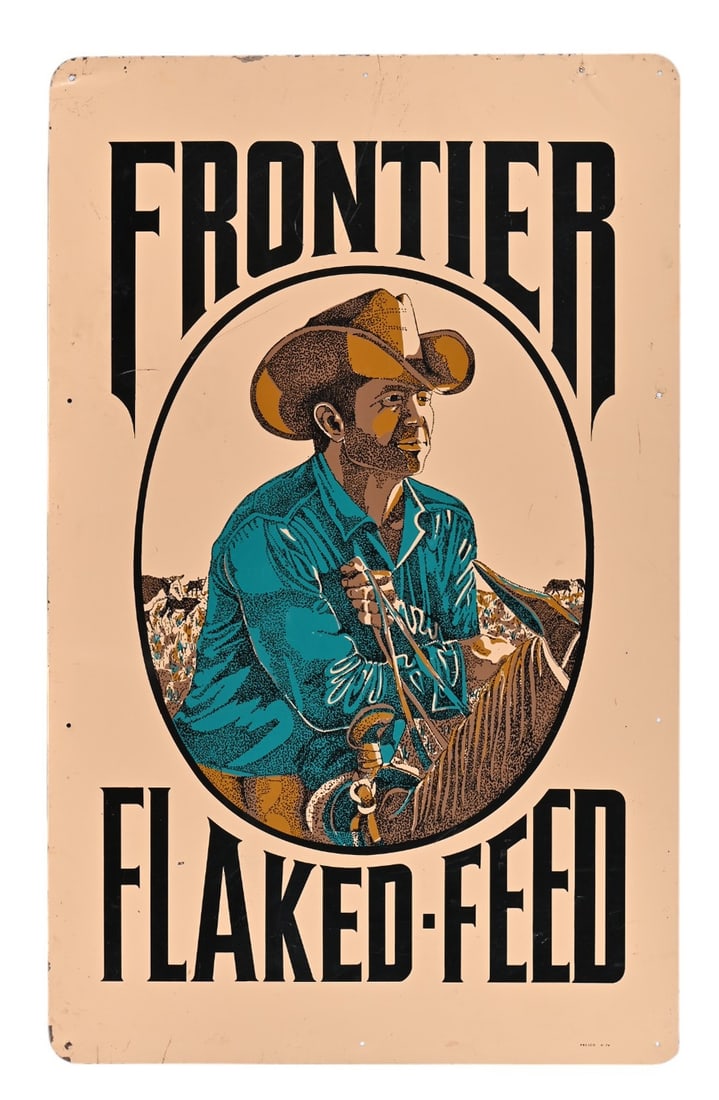 Frontier Flaked-Feed Tin Sign