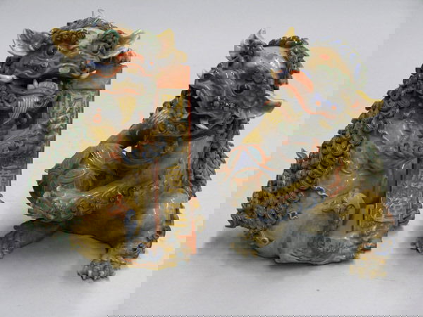 Fu dogs in polychrome ceramic