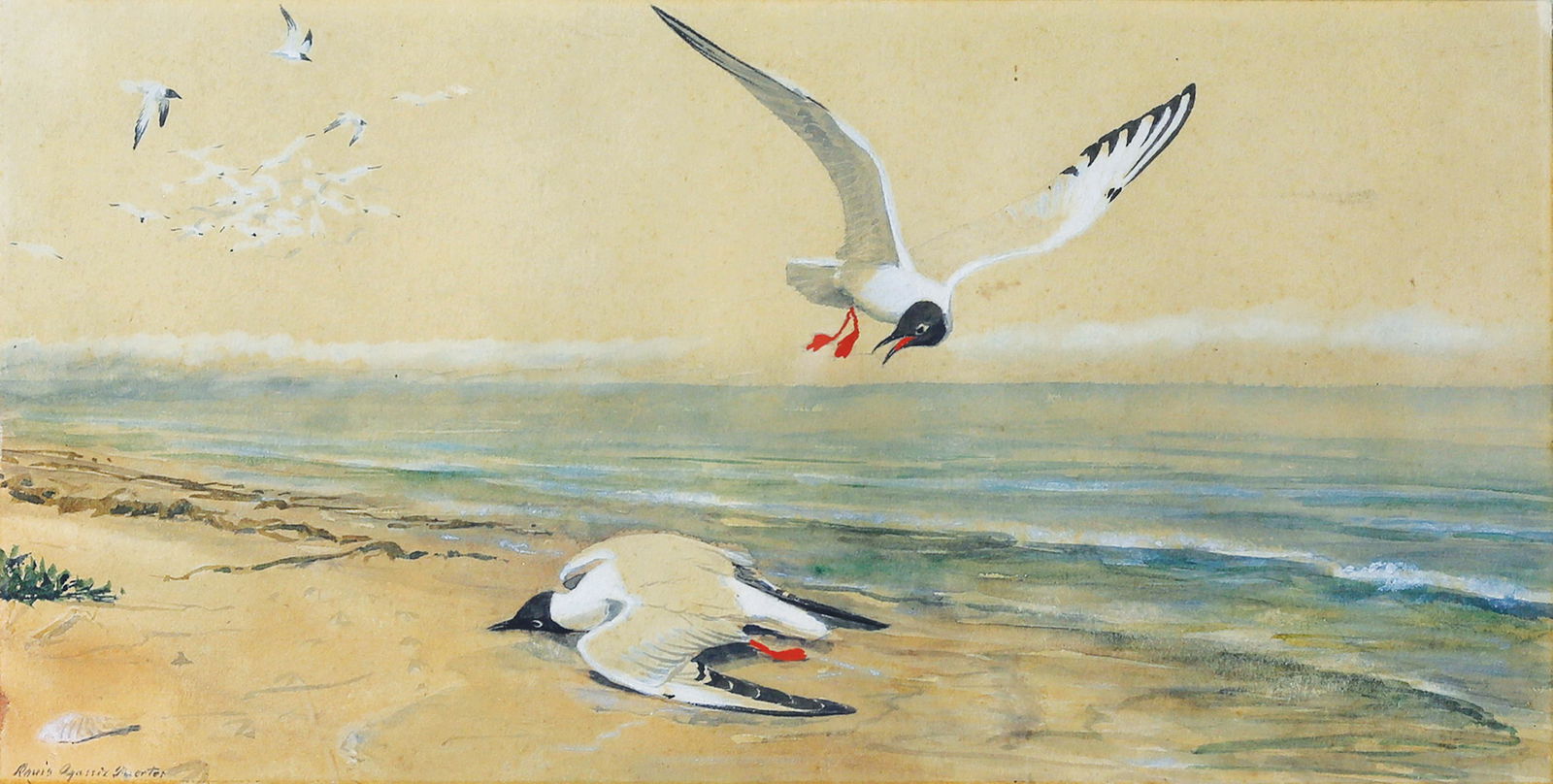 Gouache painting Seagulls on the sea V. Mishurovsky