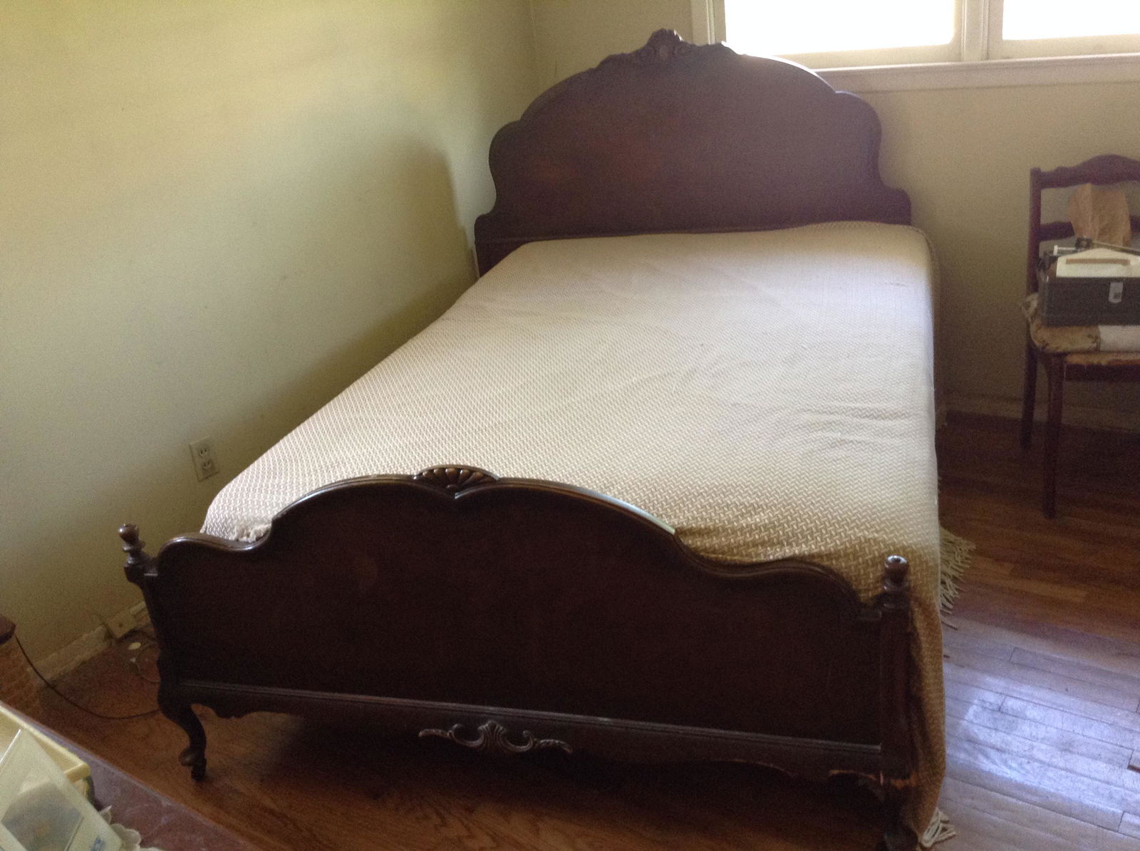 full size early hand carved bed