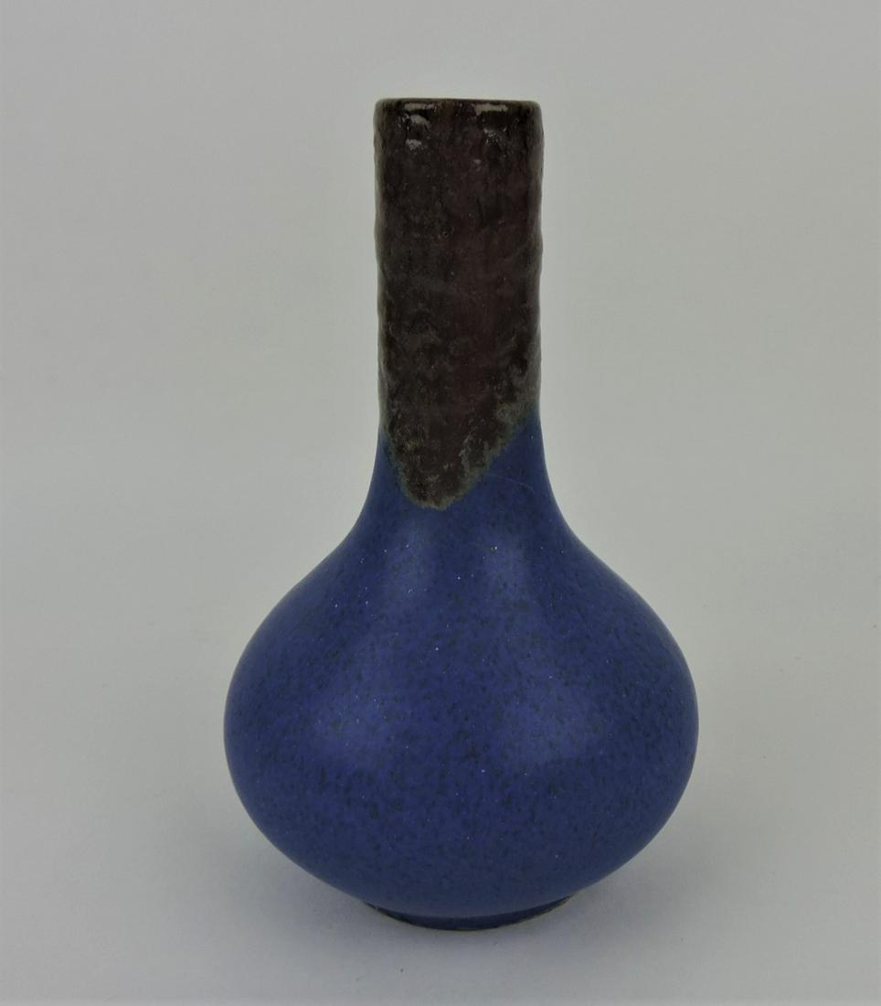 Fulper brown over blue bottle vase, 8"