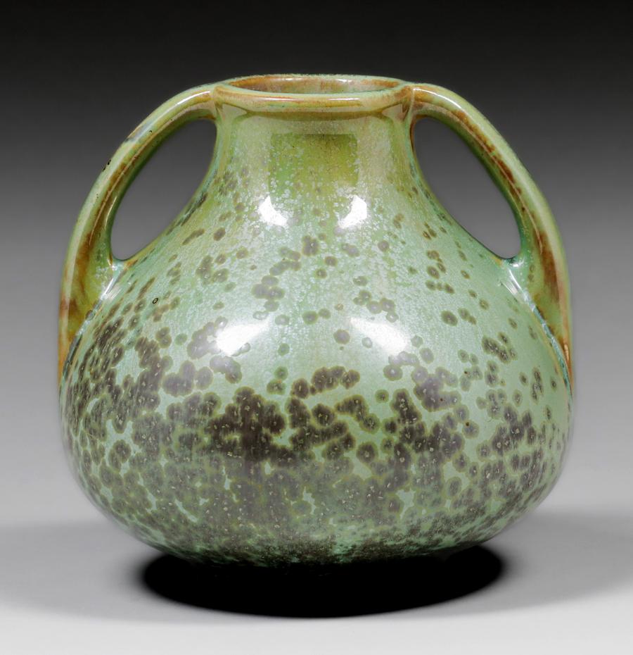 Fulper Pottery Two-Handled Leopardskin Vase c1910s