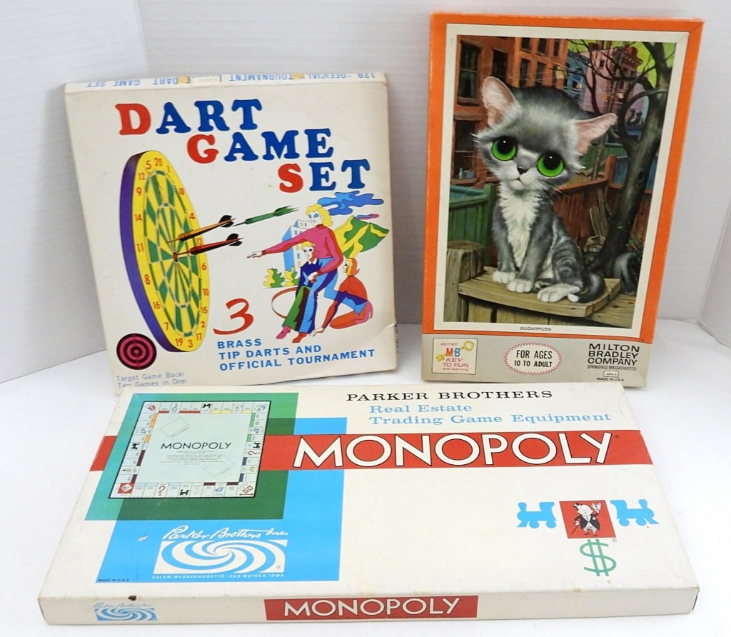 Lot of Assorted Antique ToysAtari 2600 Lot Ms. Pac-Man, Pac-Man, Mario Bros., Smurf4 days LeftNovelty Bar Chimes NOS, Buddy L Battery Op Toll Booth, Wood Ag Hall Toy SetMar 16, 2026Baseball Mixed Lot Of MemorabiliaMar 05, 2026Atari 2600 Bowling & Video Pinball (2)4 days LeftA eclectic collection of vintage 1990s and early 2000s pop culture collectiblesA Collection of Vintage Tabletop Role-Playing Game Boxed Sets Including World of Greyhawk, Twilight:1 day LeftA Collection of Vintage Sports Trading Cards and MemorabiliaMar 08, 20268pc Vintage Board & Parlor Games, Including Yahtzee and Scrabble4 days LeftA Collection of Topps, Fleer, and Donruss Baseball Trading Card Sets and Assorted CardsMar 08, 2026Diecast cars, trucks, Texaco airplane in boxA Group of Assorted Vintage Toys and Games1 day LeftModel Kits in boxes and loose partsVintage 1961 Monopoly GameMar 04, 2026Assorted plushy and board gamesMar 07, 2026Group of Assorted Board Games and MoreMar 07, 2026