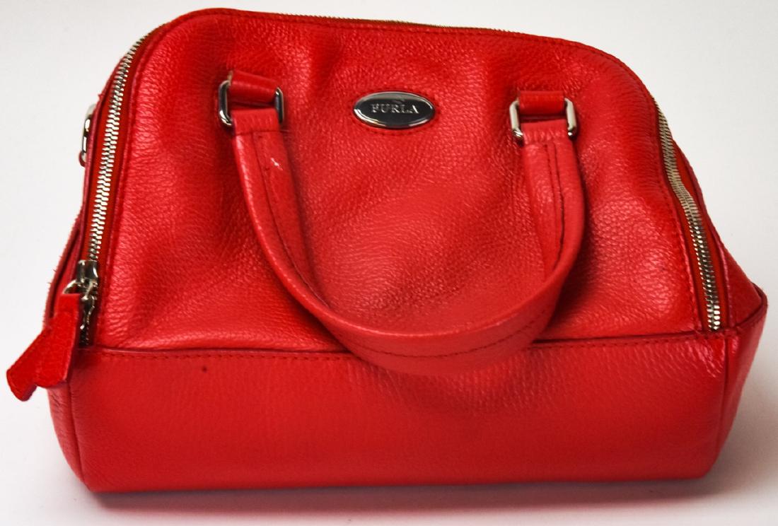 Furla Red Leather Roll Style Handbag
