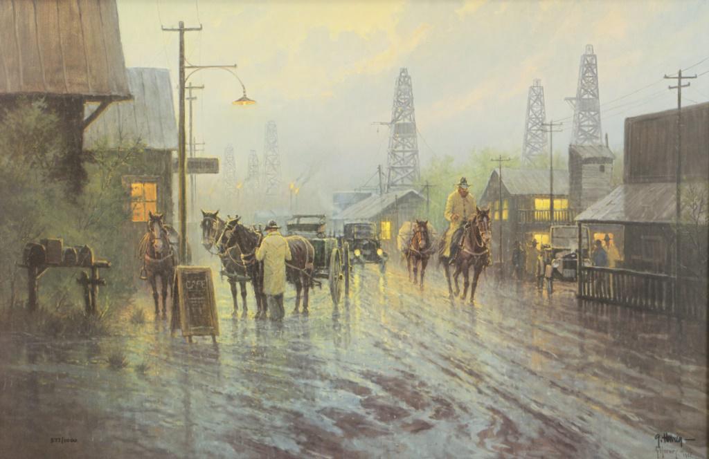 G HARVEY "LEAVING THE OIL PATCH" SIGNED LITHOGRAPH