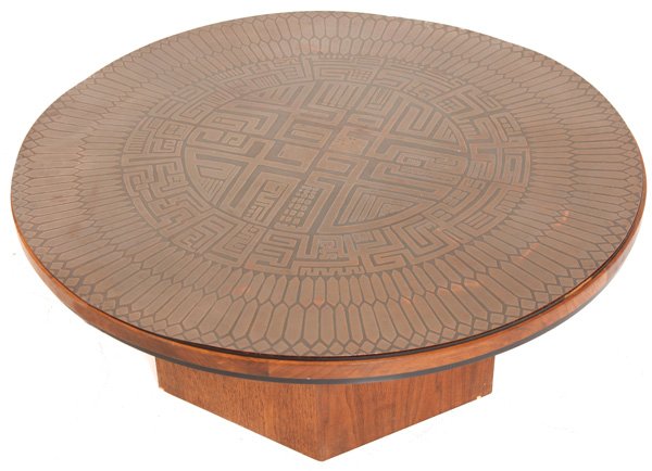 A FRENCH TILE AND WOOD COFFEE TABLE ATTRIBUTED TO ROGER CAPRON C 1960 HAVING IMPRESSED LEAF MOTIFS.Feb 24, 2026Restored Round Rattan Coffee Table with Mahogany Top4 days LeftRestored Round Rattan Coffee Table with Mahogany TopContinental European Hand Hammered Copper Clad Octagonal Coffee Table Early 20th C., H 14" Dia. 35"3 days LeftMONUMENTAL RUSTIC WOOD-TOP WROUGHT IRON COFFEE TABLE, 84"L5 days LeftFRENCH SOLID MAHOGANY COFFEE TABLE HAVING A SLAB TOP RESTING ON A TWISTED IRON BASE C 1960.Feb 24, 2026SCANDINAVIAN COPPER TOP COFFEE TABLE 1970S14 hrs LeftRARE FRENCH WOOD AND TILE TOP COFFEE TABLE HAVING AN "ETCHED" CAT RESTING ON A PERSIAN CARPET IN THEFeb 24, 2026Round Regency Mahogany Center Table with Tooled Leather Top by Maitland SmithFeb 27, 2026Round Center Table with Parquetry Inlaid Top and Bronze FeetMar 04, 2026EDMUND JORGENSEN ART DECO COFFEE TABLE 1940S3 days LeftMaitland Smith Figural Mahogany Center Table with Carved Scalloped EdgeFeb 24, 2026Paul Frankl Oak Stepped Cerused Coffee Table for Brown Saltman4 days LeftTable China, 20th century384 Lots AwayInlaid coffee tableFeb 26, 2026Italian Renaissance Style Parquetry Inlaid Mahogany Drop leaf TableFeb 27, 2026