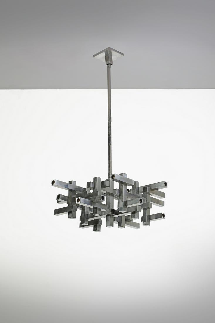 Gaetano Sciolari Style Tubular Chrome Chandelier