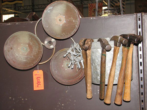 GALVANIZED BUCKET WITH HAMMERS AND CLAW HAMMERS,