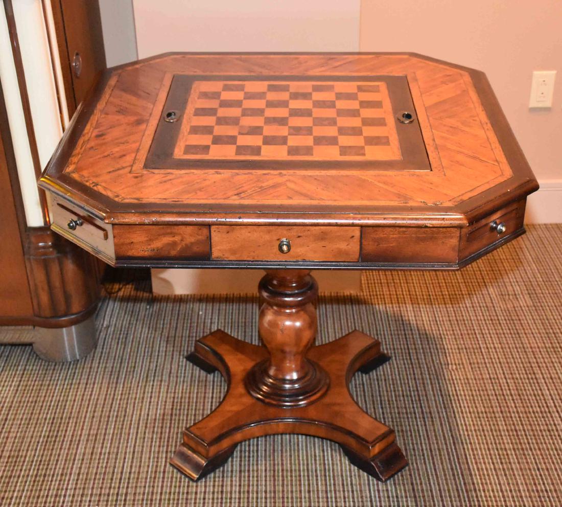 A specimen marble, hardstone and mineral games table top Fixed on an associated 19th century ros...Beautiful Neoclassical Inlaid Pedestal Table3 days LeftButler Fredrik Cherry Brown Game Table5 days LeftMaitland Smith Regency Style Leather Top Game Table5 days LeftPonte Hand Painted Wood Game Board TableFeb 11, 2026Inlaid Chess Table & French Revolution Chess Set3 days LeftSatinwood Games Table in Adams Style from Stately Homes Collection5 days LeftFreeman Carved Mahogany Gaming Table w/Chess Board & 16 Chessmen Complete5 days LeftMahogany Tooled Leather Top Drum Table with Two Drawers by FergusonFeb 16, 2026Mahogany Carved Tilt Top Pie Crust Top Table With Bird CageFeb 16, 2026Chinese Export gilt lacquer games tableFeb 20, 2026Chippendale Style Mahogany Three Pedestal Dining Table, 2 Leaves 20th Cent., H 30" W 48" L 113.5"Feb 19, 2026Russian Chess BoardFeb 14, 2026An antique parquetry and veneer wood oval dining table with gilt bronze mountingsFeb 24, 2026Butler Bannockburn Game Table Olive Ash Brown Finish1 day LeftRegency Style Inlaid Mahogany Dining Table1 day Left