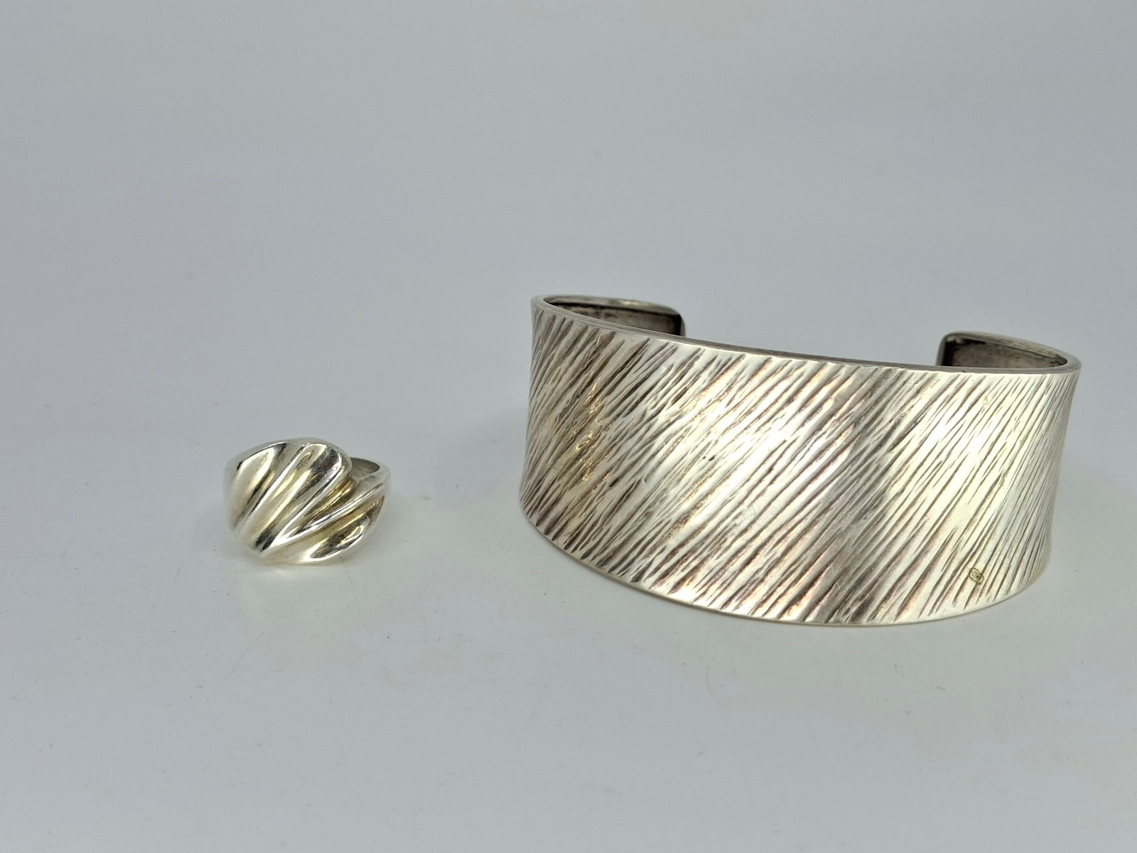 SILVER CUFF BRACELET AND RING, SZ 7 MEX 925, BRACELET 950, TOTAL 32.04 GR.