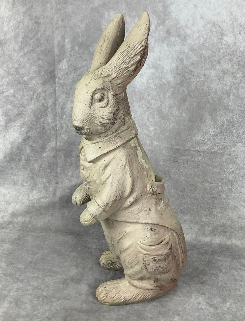 SoldClay Garden Bunny Rabbit FigurineStatue bunny rabbit figurine depicts a rabbit in a crouched position. Rabbit, statue, bunny, figurine, garden, clay. Contains some weathering. Measures approx 7 inches tall x 6 inches wide. Indoor outSee Sold Price